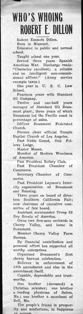 Whoing" the curriculum of Rotarian Dillon shows again, that being a Rotarian