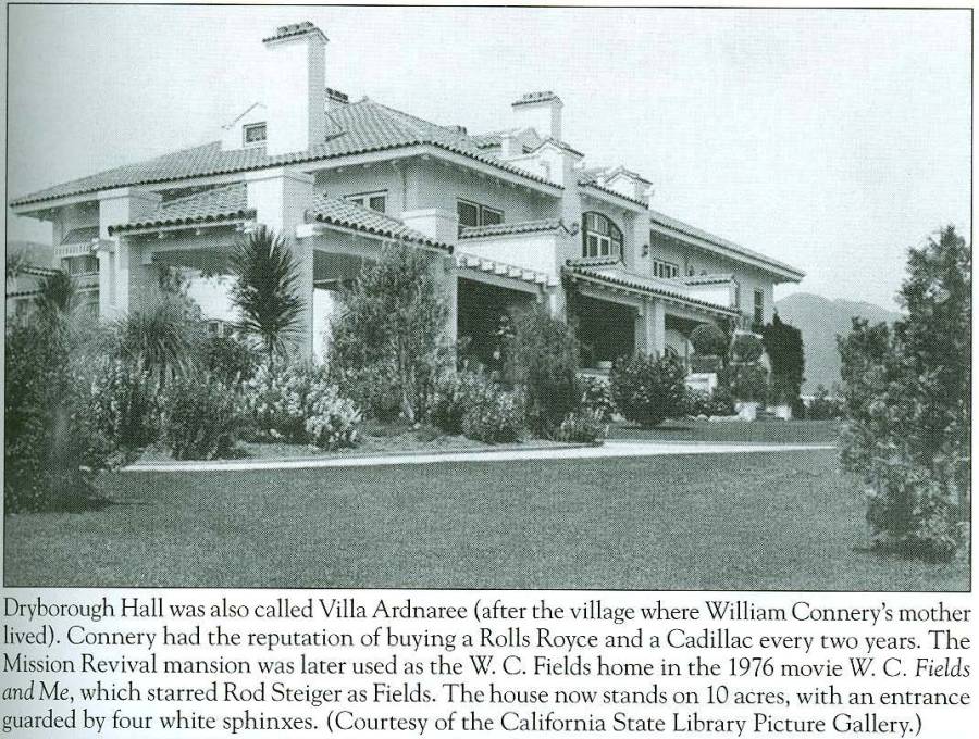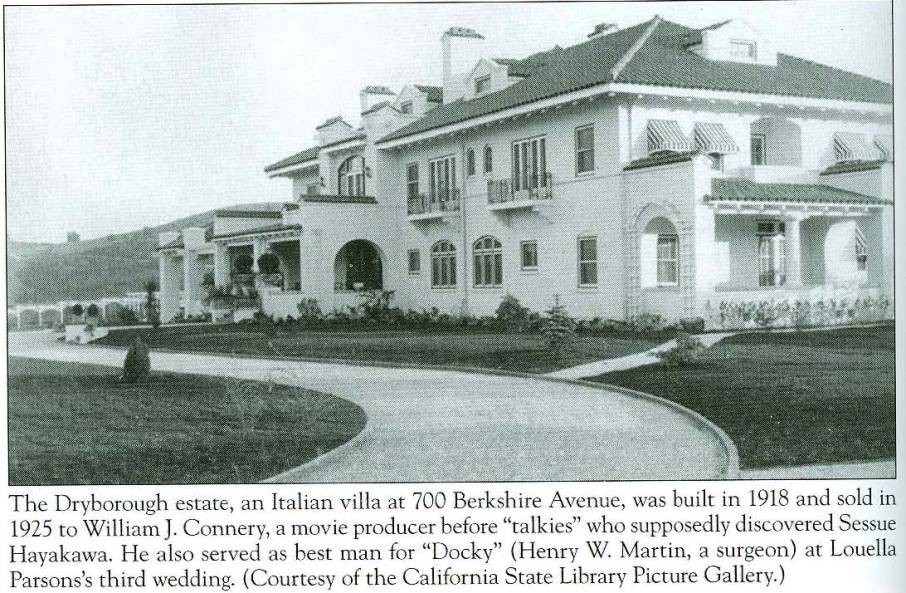 He finally left Chicago in 1919, and appears with his wife on the 1920 Census in La Canada Flintridge, Burbank, California. where he is shown as a hotel owner. However, it is not certain whether his house in California was a hotel or not. He retained ownership of the Virginia and Gladstone hotels in Chicago , although his son Arthur took over their management. Again, his obituary calls him a “winter resident” so it may be that he did not move into Burbank until he had bought a house there. This time the 1920 Census shows Grace Louise Dryburgh as ‘Born in Colorado in 1900’, and her relationship to the head of household is ‘daughter’. The house which Dryburgh bought was originally called the Villa Ardnaree and was on occasion used as a film set. The Los Angeles Times report of the purchase is dated April 16, 1919. The property included 8 acres and had 16 rooms and 5 bathrooms; it had tenant houses and a garage big enough for 5 vehicles. The Villa was renamed Dryburgh Hall and it was there that he died on March 22, 1923. After his death, the State Controller in L.A. assessed his estate as worth $136,327,
