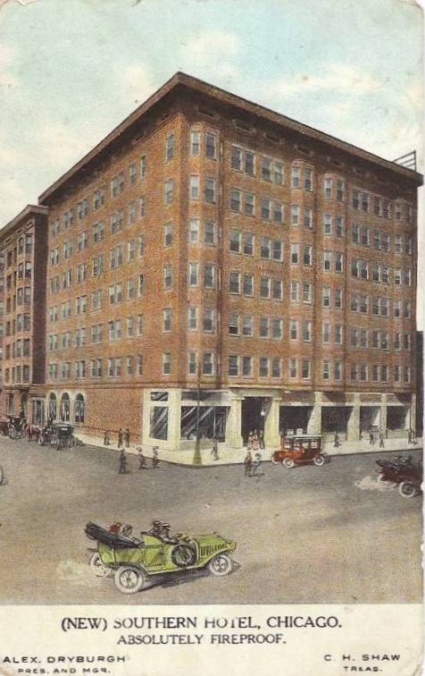 their daughter, Ethel, was also born in North Dakota**. For the next few years, nothing is known for certain about their whereabouts. However, in Dryburgh’s obituary in the Los Angeles Times in 1923, he is described as going from Aberdeen, South Dakota to Chicago. Additionally a baby girl’s birth and death is recorded on February 19, 1888 in Minneapolis to Alexander and Margaret Dryburgh of 77 Highland Avenue, and this is almost certainly them. In the same L.A. Times obituary there is reference to another daughter called Louise. This is the Grace Louise Dryburgh shown as born in Colorado in 1900. But in the 1900 census, the family is in Pine Bluff City, Arkansas, where Alexander is shown as a ‘hotel proprietor’. In 1901, a report in the Chicago Tribune describes the elopement of daughter Ethel Dryburgh with Frank Brown from Chicago and they get married in St Joseph, Michigan. Alexander is now shown as the proprietor of the Monroe Hotel, Monroe, Louisiana. However, in 1904 he is shown in an advertisement as Manager and President of the New Southern Hotel in Chicago. In 1906, he is shown on the roster of the Chicago Rotary Club and is still the manager and proprietor of the New Southern Hotel in Chicago, with “special rates for Rotarians