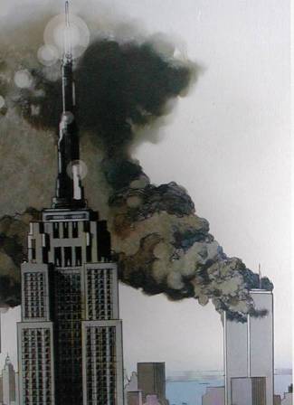 Later we went up to view the one television (the language was Georgian, of course) and I saw in horror the image of the burning, collapsed and torn twin towers of the World Trade Center.