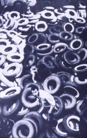 The men and women dance. There are no spectators. The men jack up the car, remove the wheels, set fire to it, sit down to watch, and finally light up cigarettes. All the men remain, eyes upon the smoldering car, until it is burned up. Then, they leave quietly, driving away. As Kaprow remarks, "The line between art and life should be kept as fluid, and perhaps indistinct, as possible."