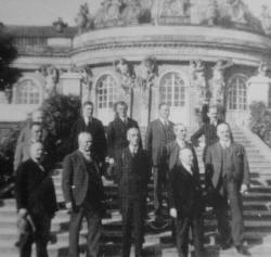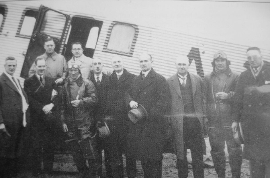 These two photos, above left and right, by courtesy of the Doncaster Rotary Club, show a party of South Yorkshire Rotarians on a visit to Eastern Europe in front of the Sans Souci Palace at Potsdam near Berlin, and with their pilot in front of the airliner (Junkers 52?) which took them on their visits to Berlin, Vienna, Budapest and Prague. Molloy will be there but we are not sure which he is!! Help gratefully received.