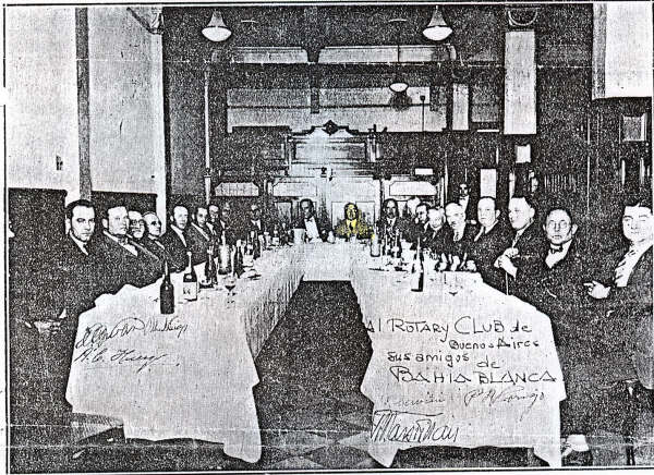 He presided the inaugural session of the Rotary Club of Bahia Blanca, Argentina in December of 1927. As usual, the ceremony was well covered by the local press, and thus contributed to the spread of the Rotary movement.