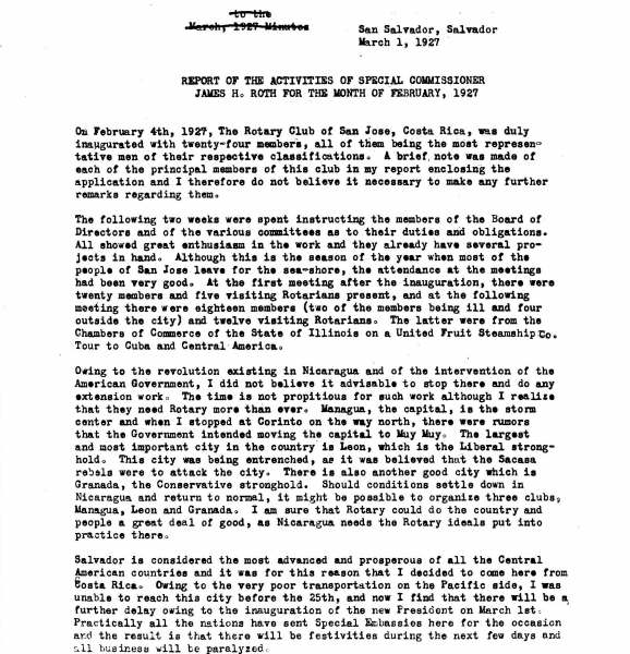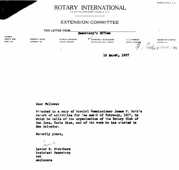 In April of 1927 he received this letter from Rotary International (the name had been adopted in 1922), requesting his help in forming a new club in Asunción, Paraguay.