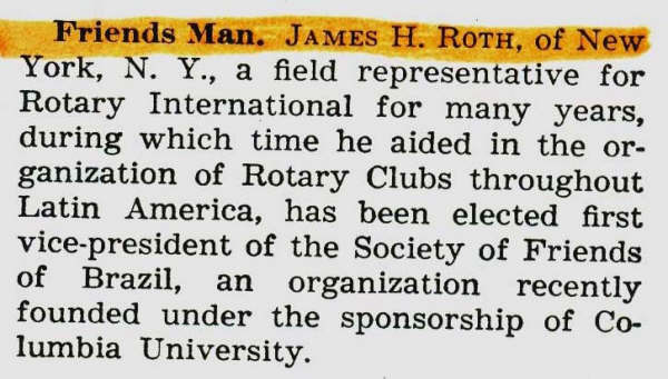 By now he is no longer Mr. James Roth, the American; he became "Don Jim" to all of his friends, most of them Rotarians now.