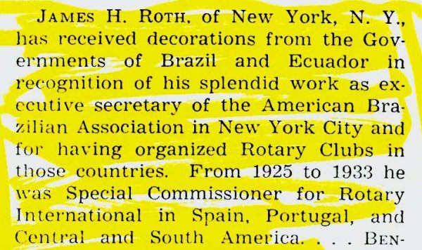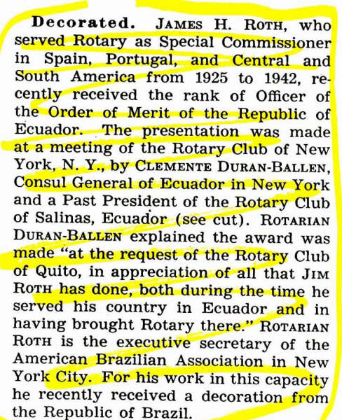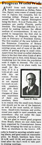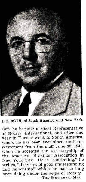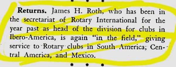 During 1927 James H. Roth, now called simply Don Jim, was extremely active. To the Rotary Clubs mentioned before, add Guayaquil, Ecuador and Bahia Blanca, Argentina.