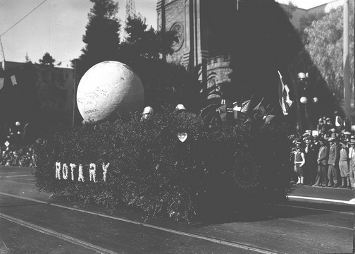 The theme of the Tournament of Roses was "Songs in Flowers" and the Rotary float was in Division IV, Class B.