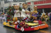 Theme:  "Building Communities, Bridging Continents".  This was also the 2010-2011 Rotary Internation theme and went hand in hand with the parade theme "Building Dreams, Friendships and Memories".  The float featured an octet of bears each distinctly dressed representing different geographic areas where Rotary is active.  The United States, England, Australia, Mexico, Canada, Korea, India and Africa..  A multitude of natural materials were used to create the various fur textures .  Various colors of chrysanthemum, palm fibers, grasses, barks, beans and much more.
