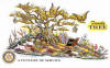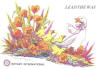 A poignant celebration of the United Nations' International Year of the Handicapped, "Trails to Happiness" represents the humanitarian actions of Rotary International.  Practicing its motto, "Service Above Self", the organization-as depicted on the float-takes time to serve the blind, the handicapped and the disadvantaged by providing nature trails and a variety of other outdoor experiences for boys and girls throughout the world.  At the front, a Rotarian helps a little boy in a wheelchair, while up ahead a small girl on crutches watches.  At the rear, another Rotarian holds up a fish that a blind child has caught.  The entry consists of roses, pompon mums, calendulas, orchids, iris, carnations and marigolds.