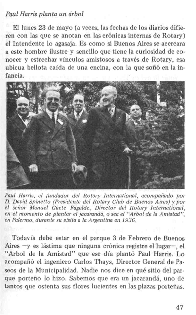 "In 1936 Paul Harris visit Santos ( Est. S. Paulo-Brazil)and at Republic Square, he planted a Friendship Tree."
