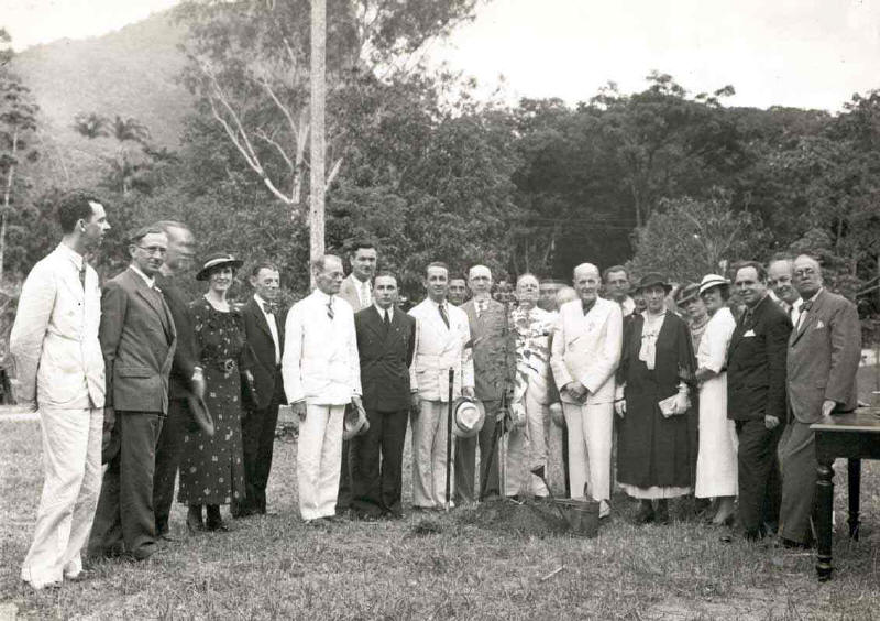 Paul and Jean Harris and others at a tree planting in Rio de Janeiro. During their trip to Columbia, Panama, Equador, Peru, Argentina, Uruguay and Brazil in 1936. |