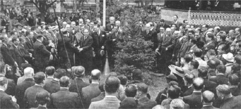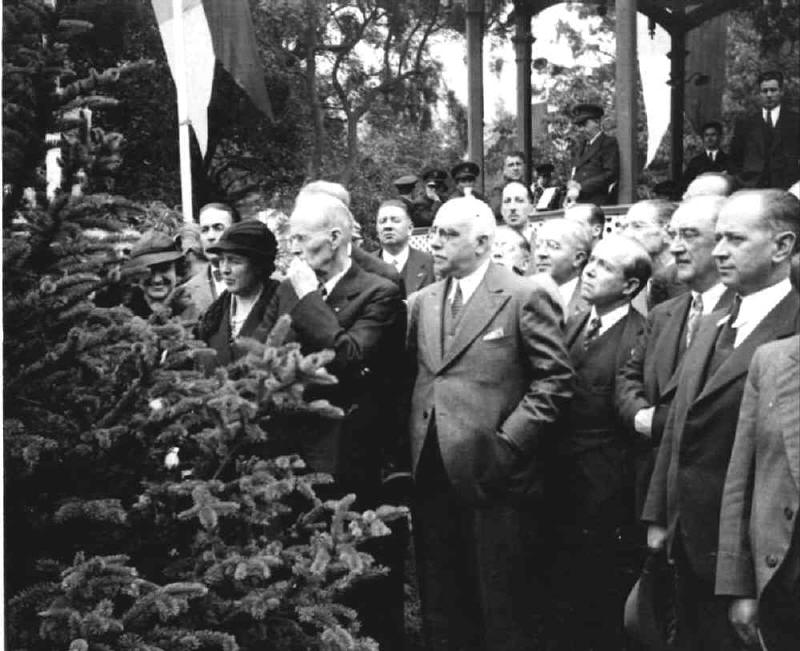 Paul and Jean Harris attended the 1936 Ibero American Rotary conference. The soil for this planting came from each of the countries represented at the conference. "While I have participated in many (plantings), I am certain that the ceremony has never been taken so seriously by so large a number." Paul Harris * |
