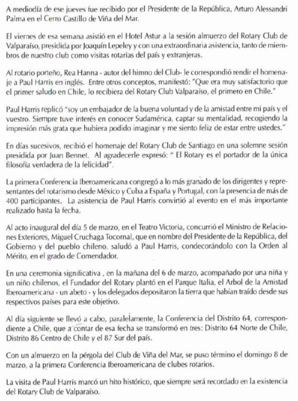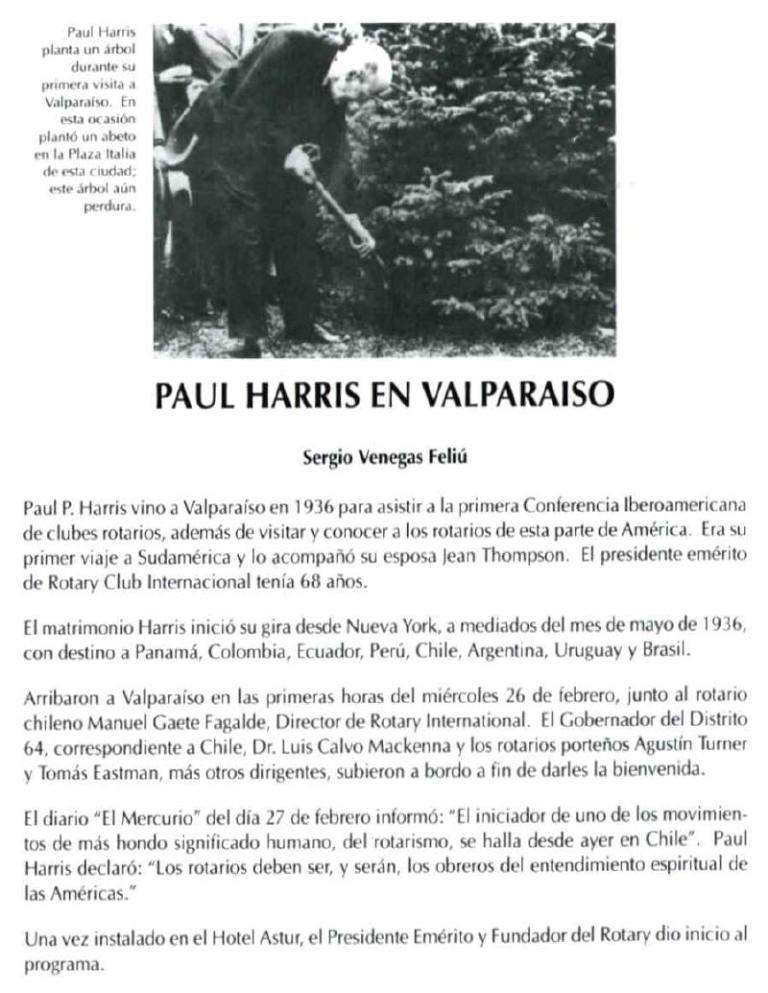 From "75 Years Rotary in Chile" provided to RGHF by Guillermo A. Izquierdo, 2001 Valparaiso Rotary Club President.