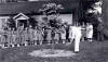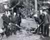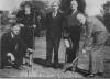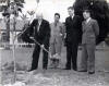 Paul Harris planting a tree in Lakeland, Florida as PDG Ed R. Bentley, Mayor E. E. Kelly, and Rotary Club of Lakeland president Echo Wigham look on. (circa 1942)