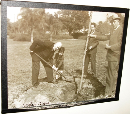 The Harris’s were frequent visitors to Florida and there is (Pictured above) a black and white photograph of Paul Harris and a little boy planting a tree. Two men stand nearby watching. The original picture in the Orlando Club files is captioned: "Paul Harris, Founder of Rotary International, frequently spent the winter months at Clermont, Florida and visited the Orlando club several times. Here, on March 3, 1937, he is shown planting an oak tree at Lake Eola off Osceola. Assisting him is John T. Branham, Sr. President of Orlando 1936-37, and a little namesake “Paul Harris" of Apopka.