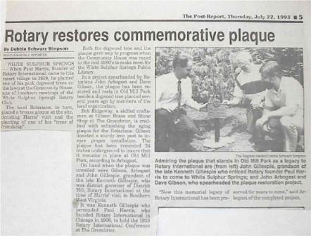 Rotary Club of White Sulphur Springs remembers our founder and friendships continue to grow. Today's members are proud to provide RotaryHistory with proof that Paul Harris' "Friendship Trees" live on. |
