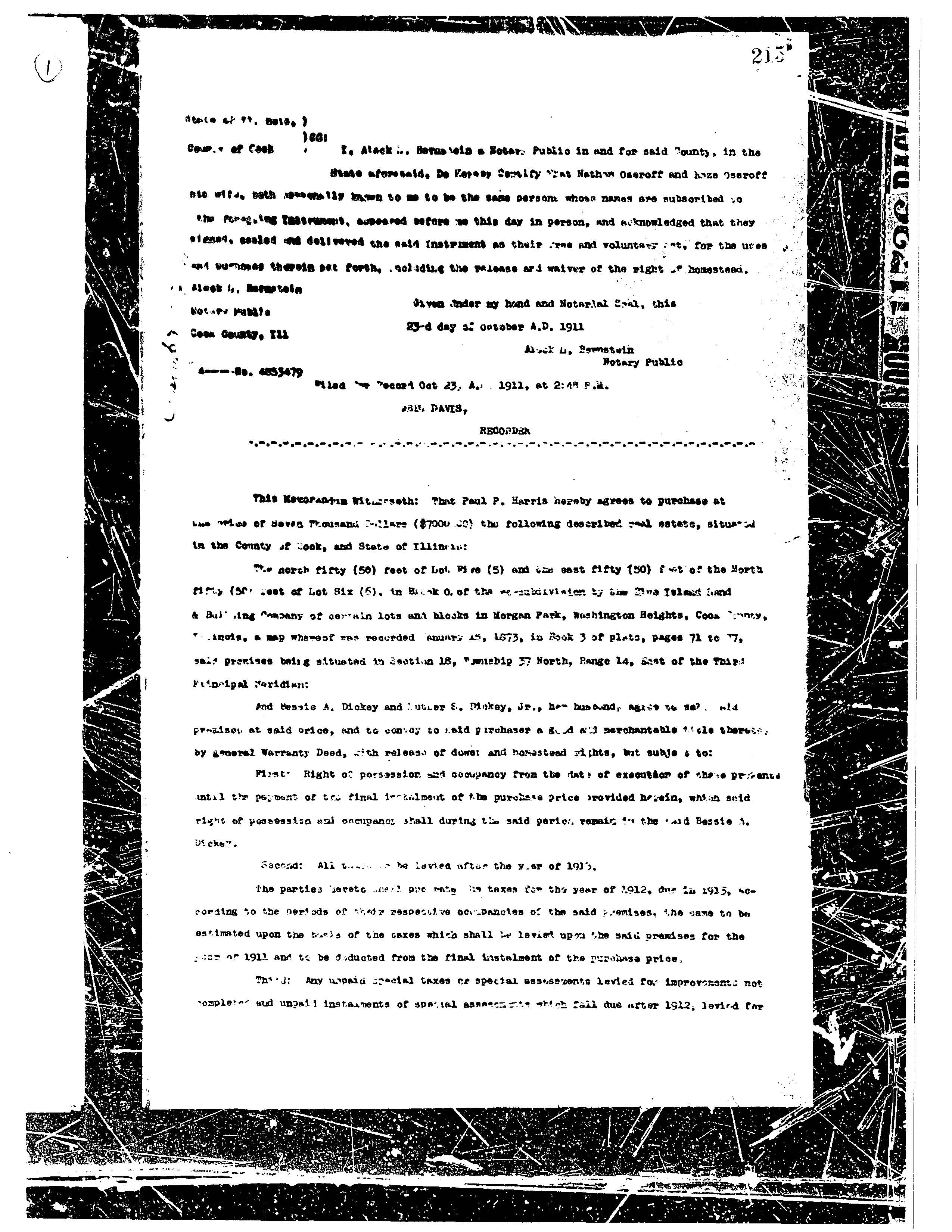 $200.00 down on the house on October 14, 1911, and put down a