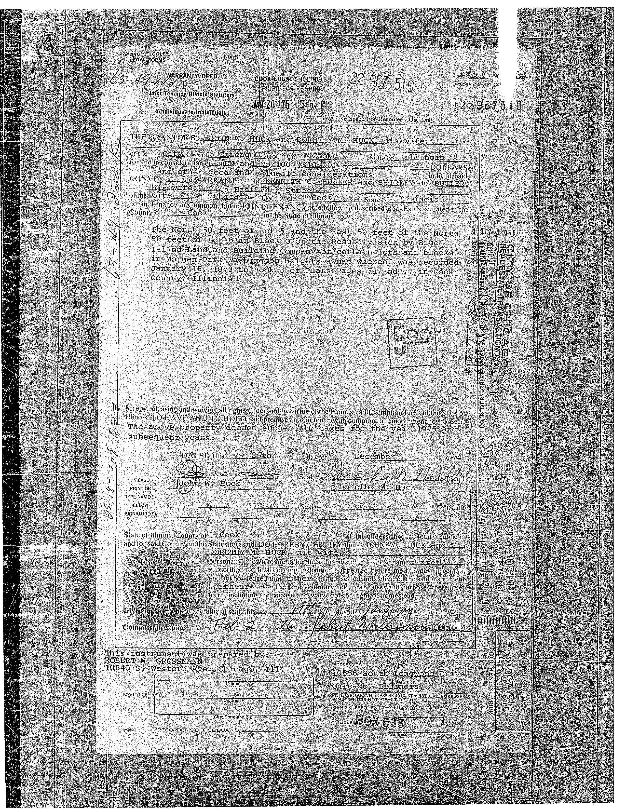 Grantor of the Deed. Thus, at least Mrs. Dickey had no problem