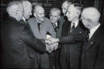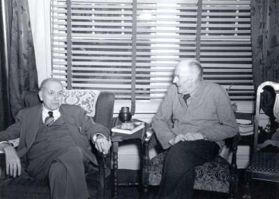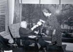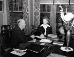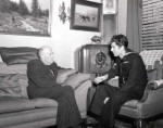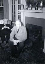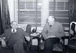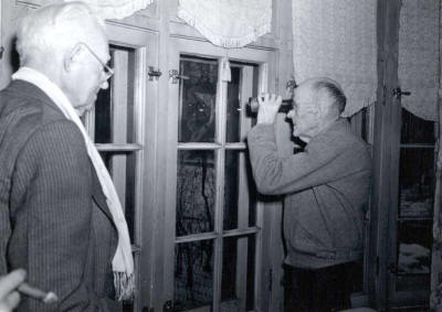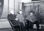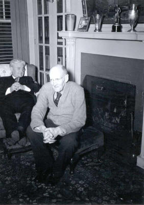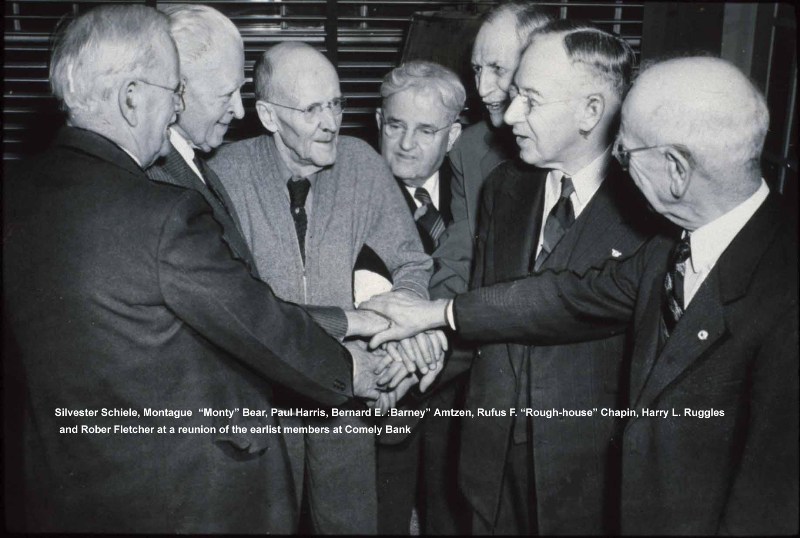 PAUL BIRD WATCHING WITH A FELLOW ROTARIAN OBSERVING HIM | CHES PERRY-THE BUILDER OF ROTARY | PAUL SITTING IN FRONT OF THE FIREPLACE IN HIS LIVING ROOM | PAUL AND CHES PERRY IN THE LIVING ROOM | JEAN ENTERTAINS |