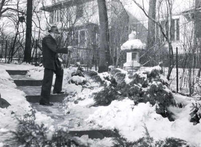 PAUL POINTING TO THE JAPANESE LANTERN |
