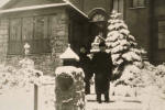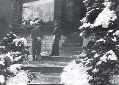 PAUL AND JEAN PAUL SUPERVISING THE SNOW SHOVELING-SUN ROOM IS ON THE LEFT HISTORICAL MARKER COMELY BANK ROAD IN EDINBURGH, JEAN'S BIRTHPLACE