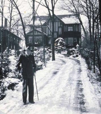 PORTRAIT OF "OUR" HOME PAUL AND JEAN BIDDING FAREWELL AFTER ANOTHER ROTARY MEETING THE ENTRANCE TO THE DRIVEWAY AT COMELY BANK PAUL POINTING TO THE JAPANESE LANTERN PAUL STANDING IN THE DRIVEWAY LEADING TO COMELY BANK