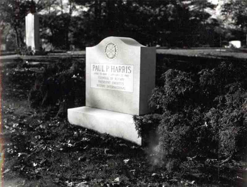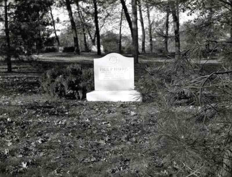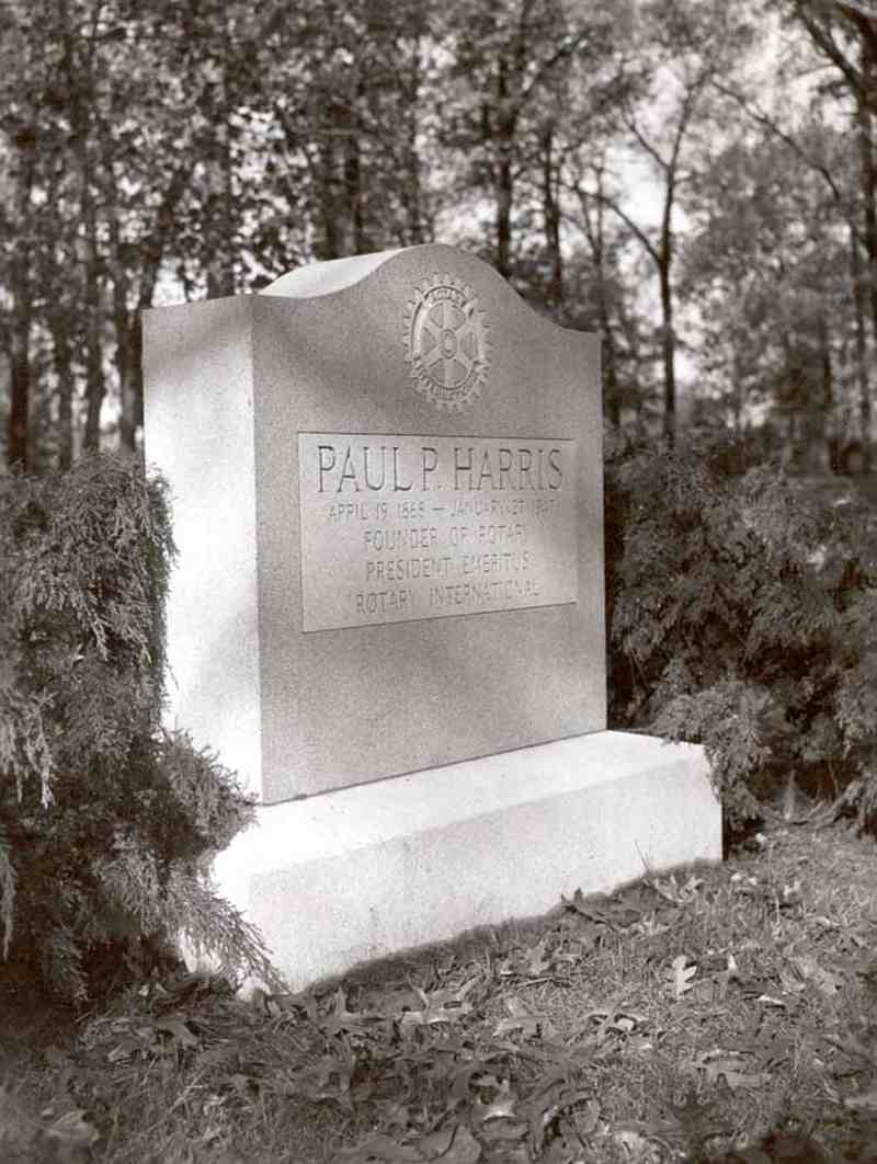 Photographs of Paul Harris' grave taken by Rotary international in the later summer/fall and the winter of 1947, the year that Paul P. Harris, the founder of Rotary died.    Also see the Rotary Timeline One Page History and  Heritage Trail