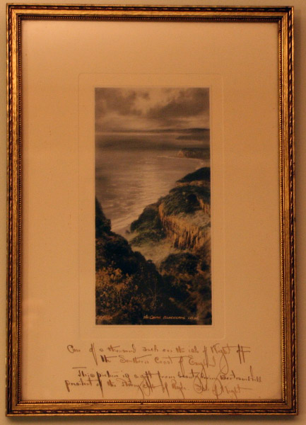 SOUVENIR  OF A VISIT IN  1937 Color print by C. Russell of  Blackgang Chine. "One of a thousand such  on the Isle of Wight off the Southern Coast of England. This picture is a gift from beauty loving Bertram Hill, President of the Rotary Club of Ryde, Isle of Wight."