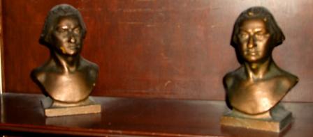 Busts of George Washington made of heavy grey metal. Origin unknown. |