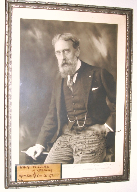 Portrait of Dr Edouard Willems. Tag on frame reads "Prof Willems of Belgium, Member of Board 1934-35." Signed : " To the Fameles (sic) of Rotary International in token of deep gratitude, Prof E.Willems. 2nd Vice President 1929-1930." The name of Dr Willems does not appear in the list of 'Directors' of R.I. in the current Official Directory for 1934/5 or for any other year. This may be an error.