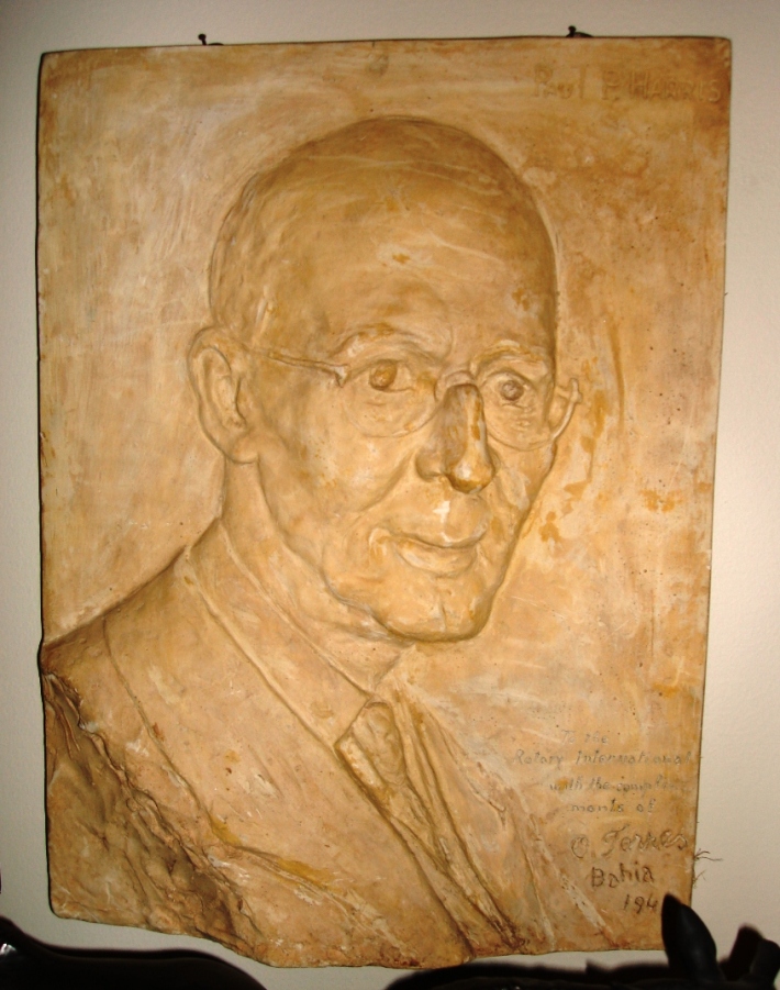 High relief sculpture of Paul Harris, Inscribed "To the Rotary International with the compliments of O Torres, Bahia 1948." This is one of the items which has been added since the death of Paul Harris