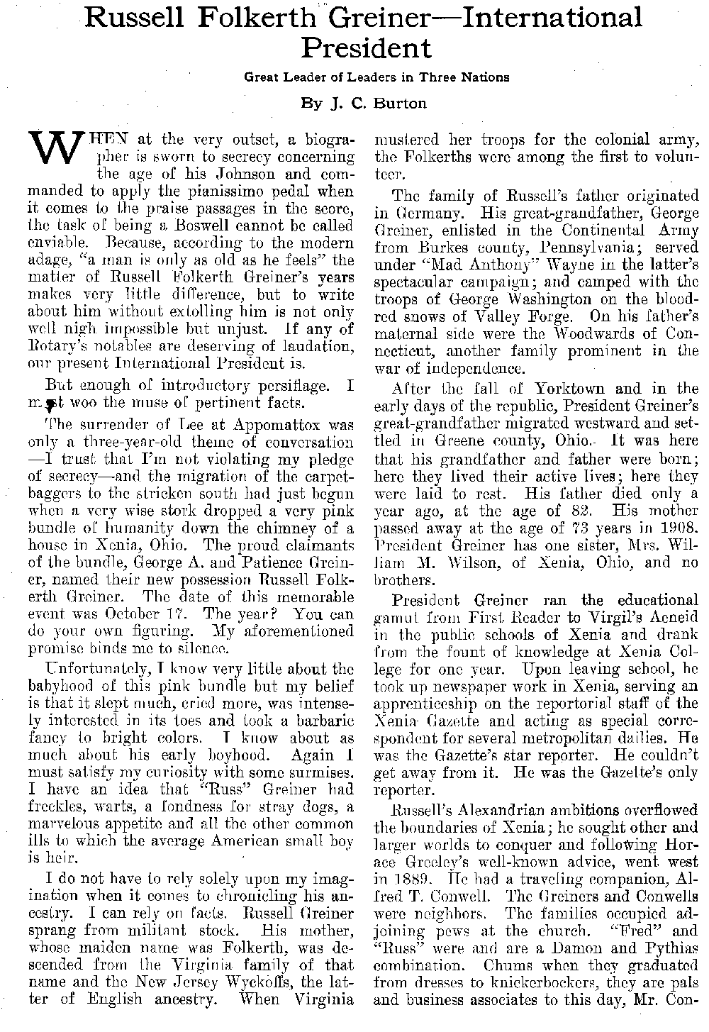 HOME Rotary International Presidents Also see: www.earlyleaders.org HISTORY CALENDAR