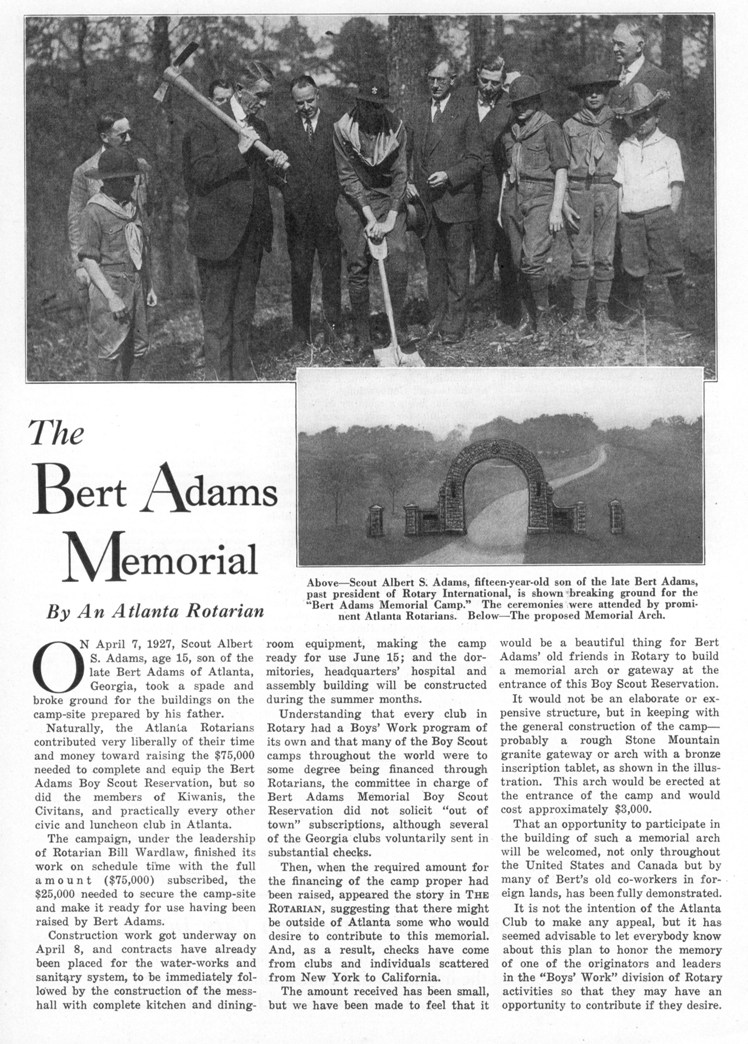 The Bert Adams Memorial, by an Atlanta Rotarian