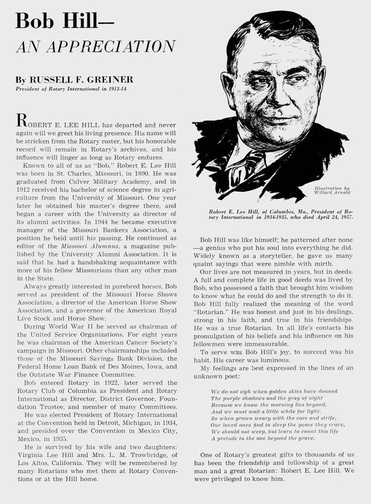 In the July issue of The Rotarian 1957 I also found an obituary of Robert E. Lee Hill (RIP 1934-35)