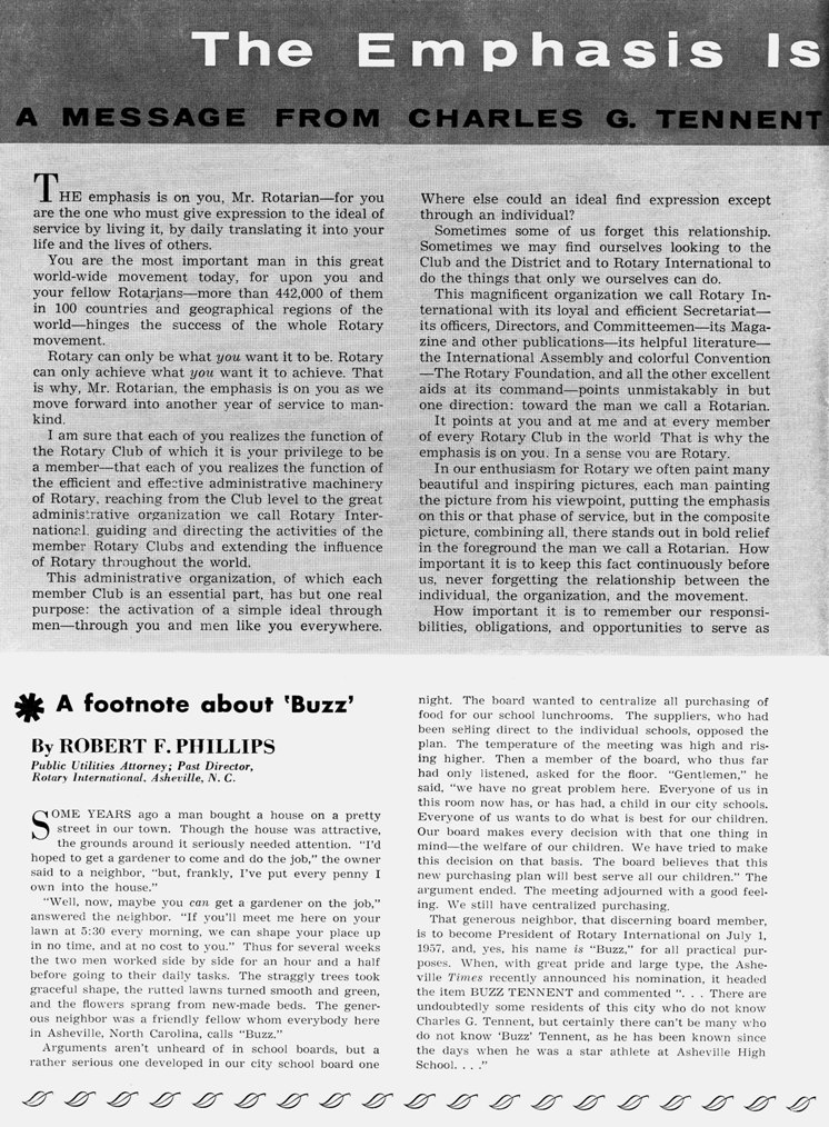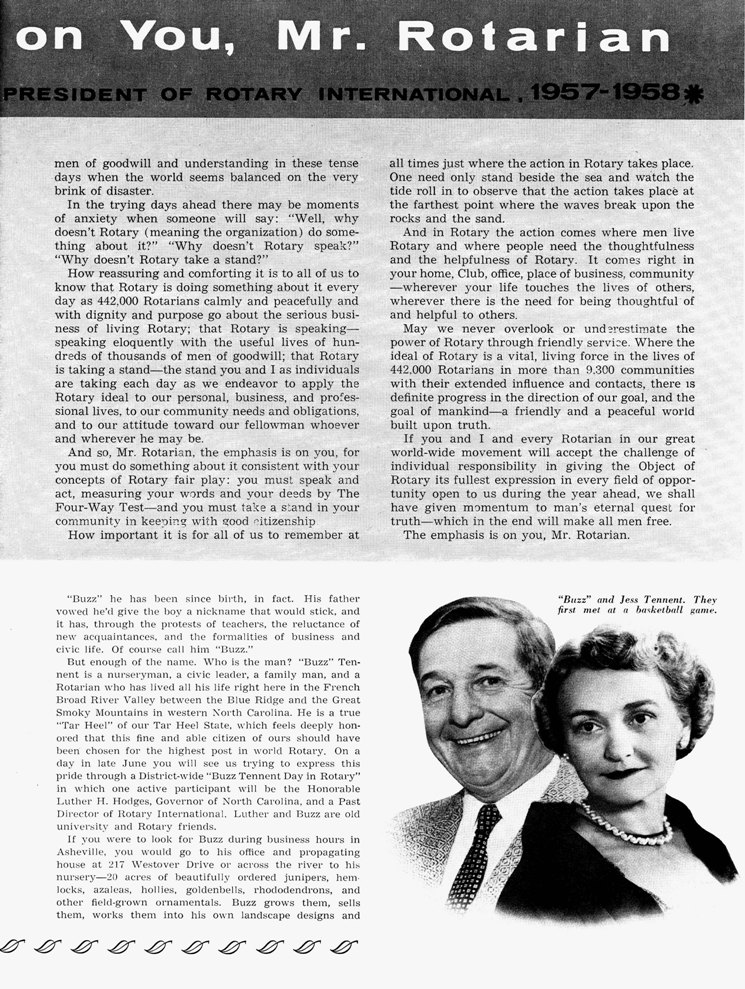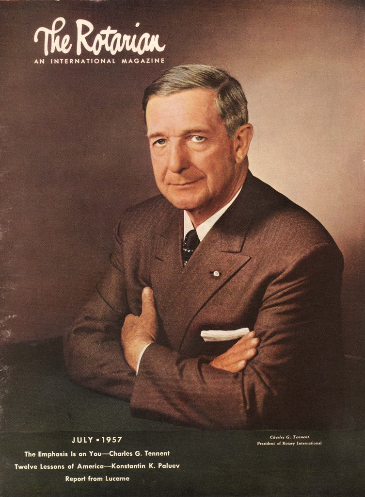 With Tennent's bio from The Rotarian, July 1957, we again have some problem with the small print. So I reduced the brightness and enhanced the contrast a little.
