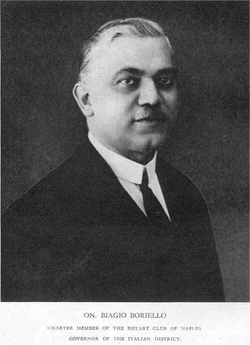 The Second Vice President was Biagio Borriello, Charter Member of the Rotary Club of Naples and Governor of the Italian District. Chairman J. Murray Hill, Director of Rotary International, read the message from Paul Harris Paul Harris' message, part one Paul Harris' message, part two