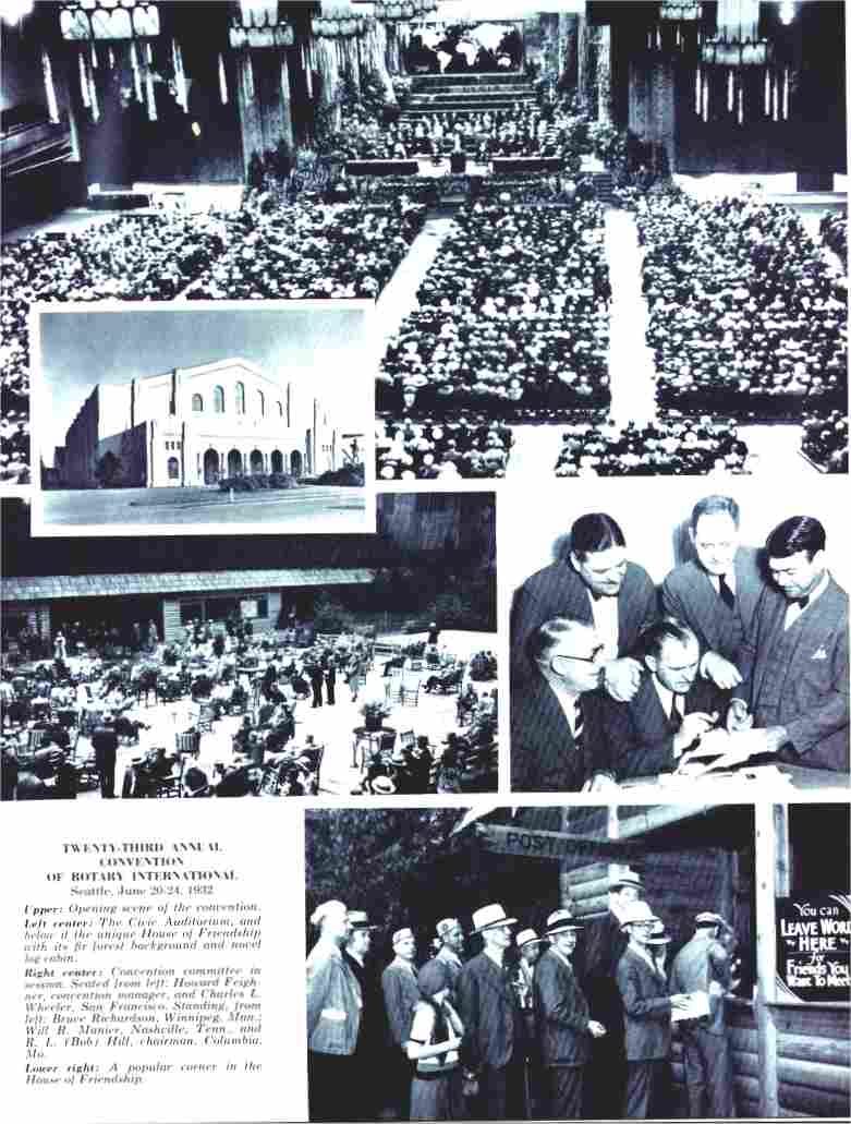 As in other conventions before, the resolutions adopted, rejected or withdrawn by the Seattle convention were of no particular interest for the average Rotarian. However, from today’s view, the discussion: “To modify restrictions pertaining to the number of rotary clubs in one city,” seems odd. Under the 1932 situation, only cities of one million or more population could have more than one Rotary club. The resolution proposed to remove entirely the limitation of numbers and to permit any city, any place in the Rotary world, to have as many clubs as it wants.