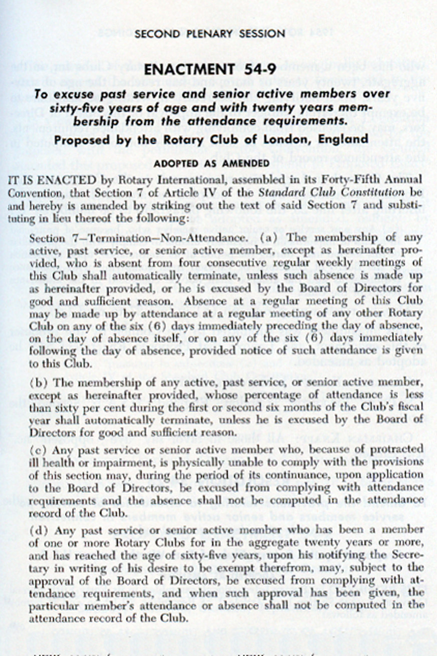 HISTORY CALENDAR SECTION HOME Conventions of Rotary International  -  COUNCIL ON LEGISLATION THEMES