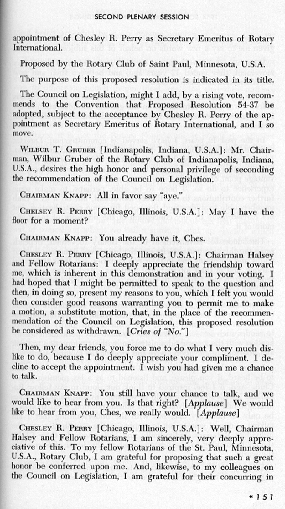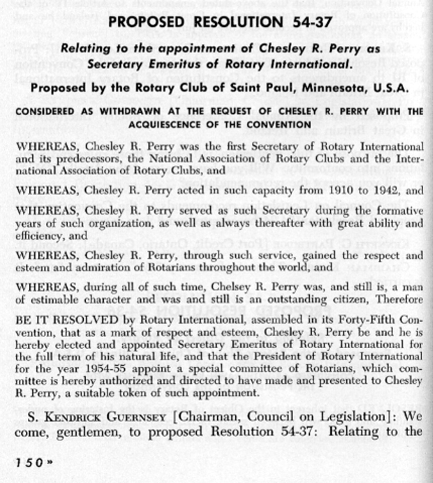 Resolution regarding Ches Perry Perry Declines honor Explains his reasons