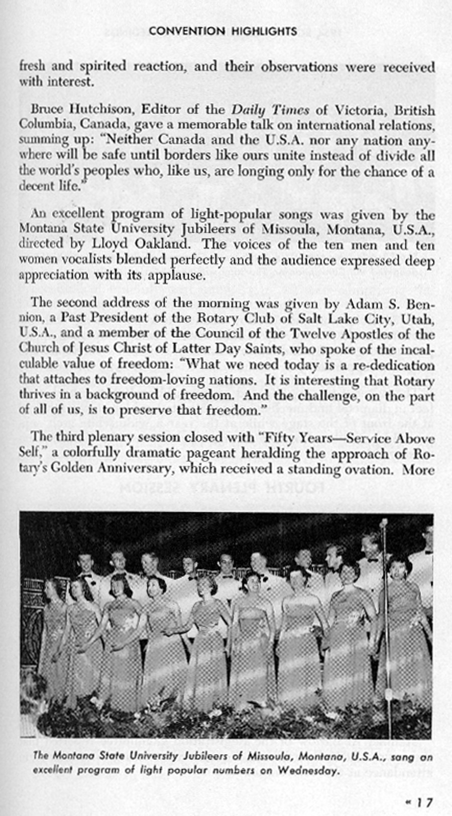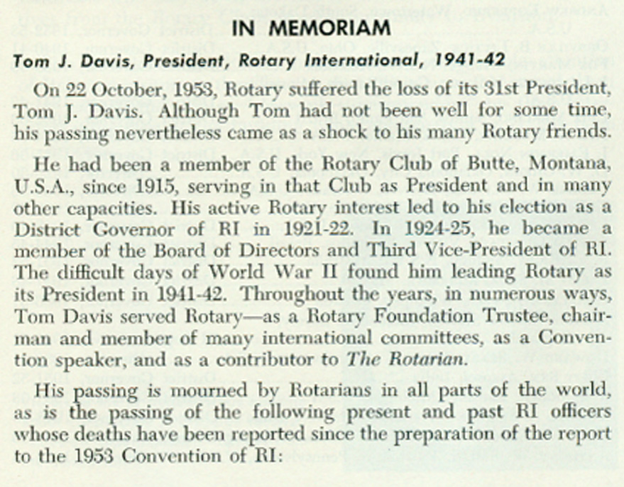 US President Eisenhower Tom Davis, Butte, Montana, USA dies New headquarters in Evanston Plenary Sessions