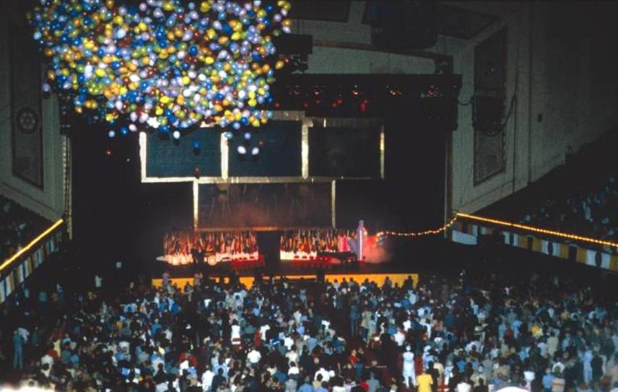A hush fell over the darkened auditorium. The spotlight illuminated the speaker and the silence was broken by the quiet passion of the words - two hundred and forty seven million dollars. The roof of the auditorium opened and thousands of multicolored balloons and confetti rained down upon the cheering Rotarians that were present.