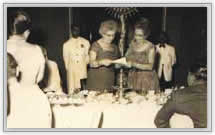 Mrs. Aubrey Hitching, Immediate Past President of the Association handing over Charter to Mrs. D.P. Billimoria upon the formation of Inner Wheel Club of Colombo.